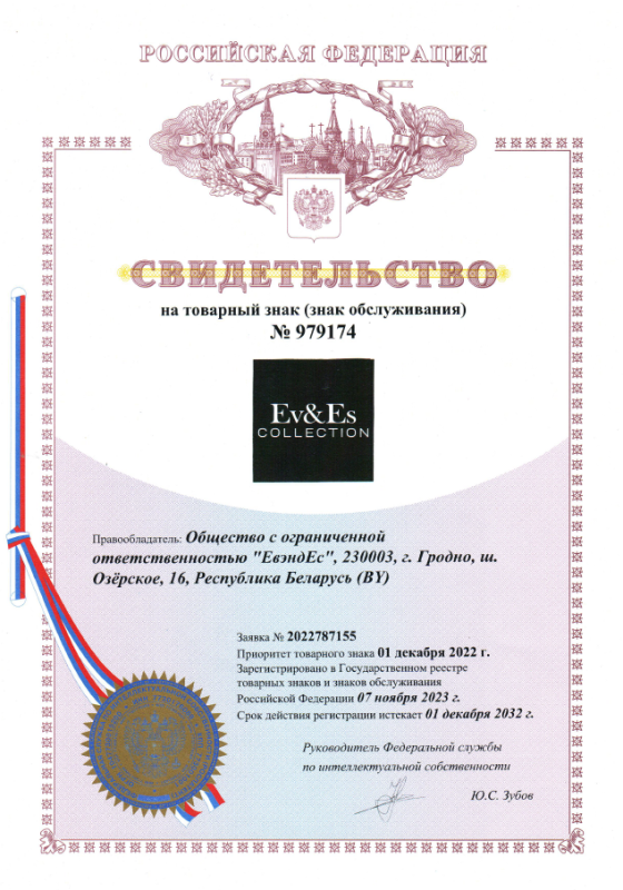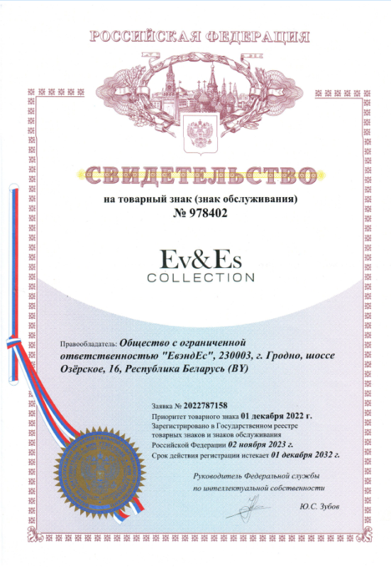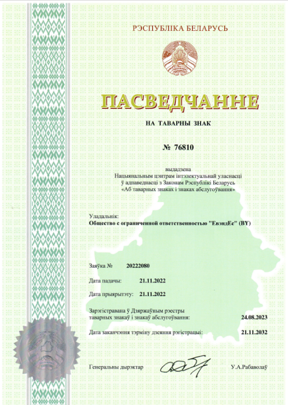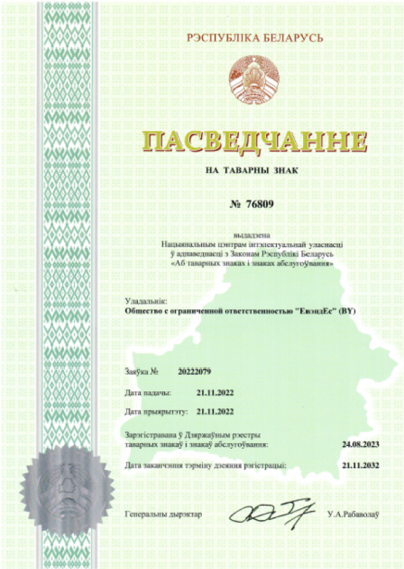 ООО "ЕвэндЕс". УНП 591035684. 230003, Республика Беларусь, г. Гродно, шоссе Озёрское 16. Свидетельство о государственной регистрации №591035684, выдано Гродненским городским исполнительным комитетом 28.10.2020г. Интернет-магазин зарегистрирован в Торговом реестре Республики Беларусь 26.02.2024 №574959.