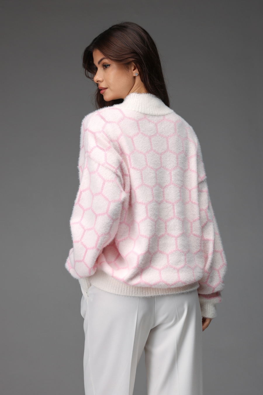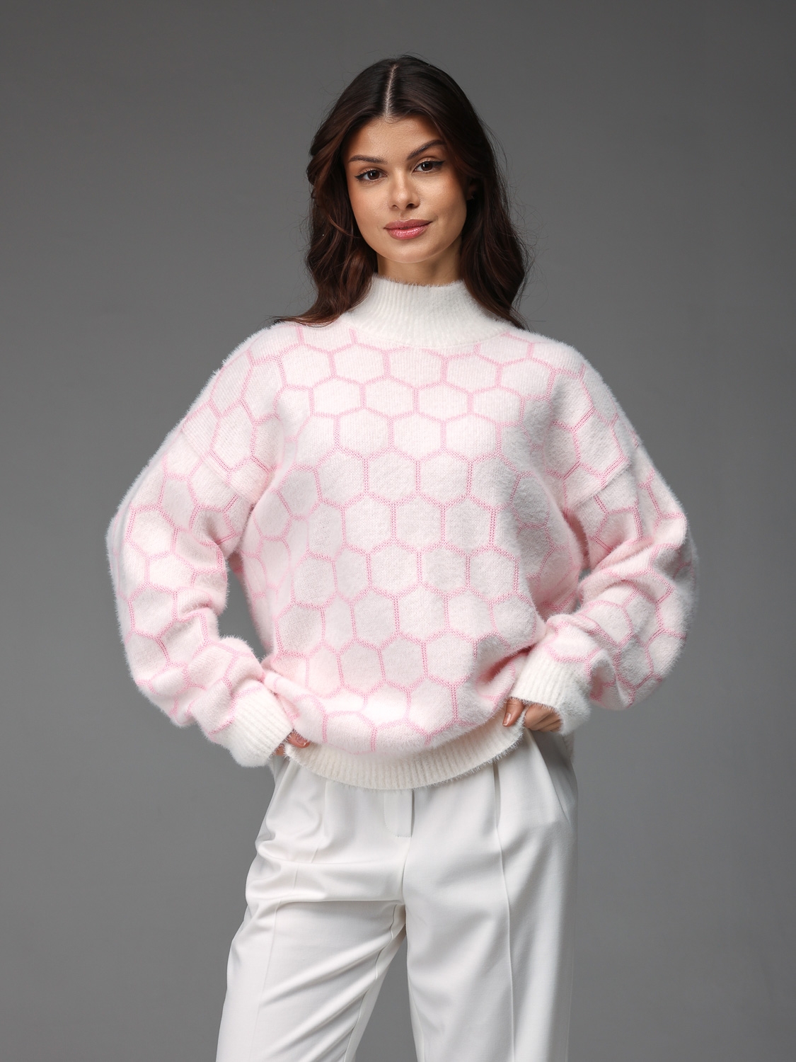 Джемпер №267 (Бело-розовый)
